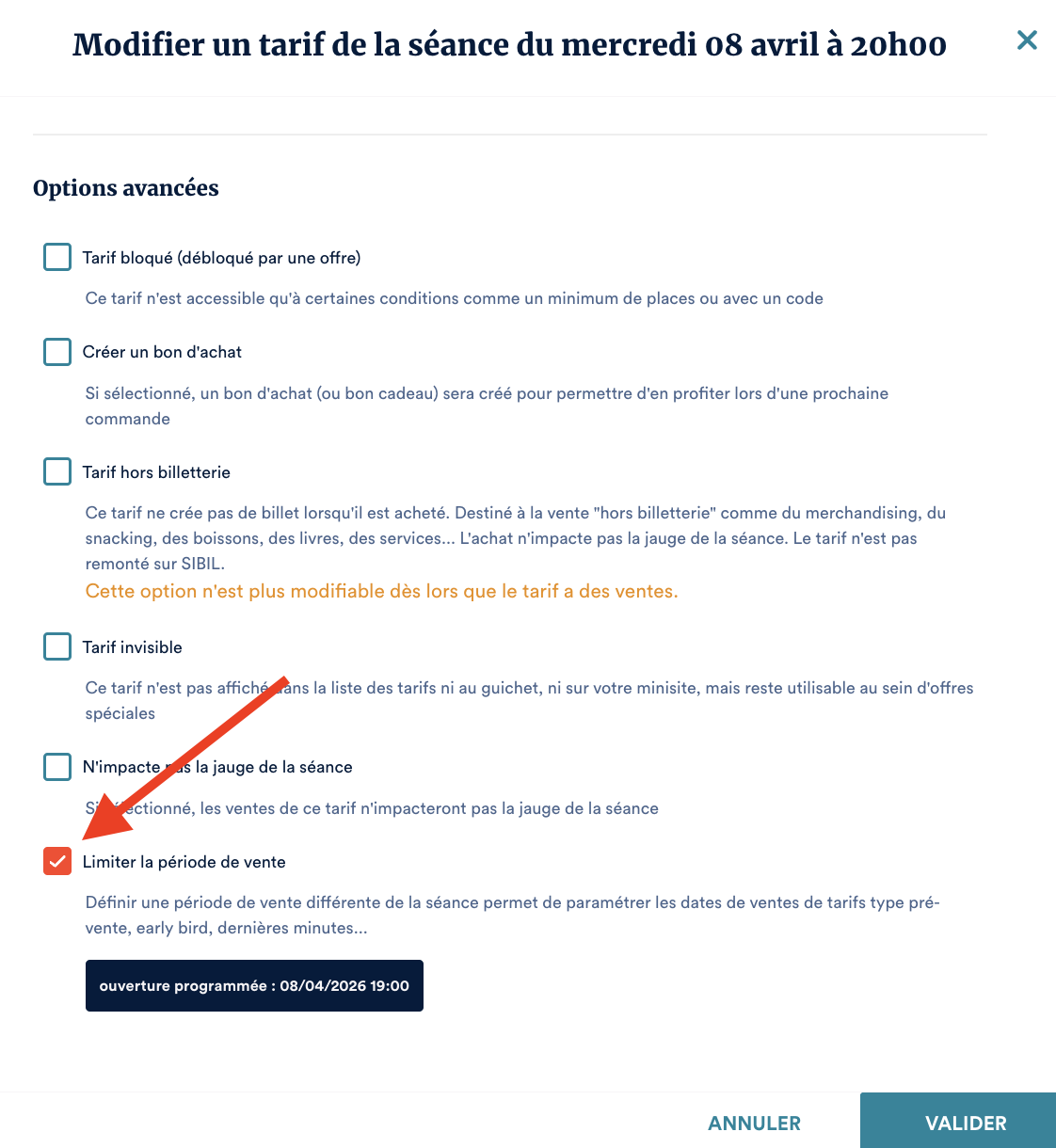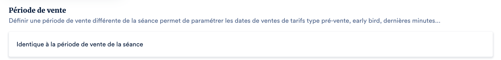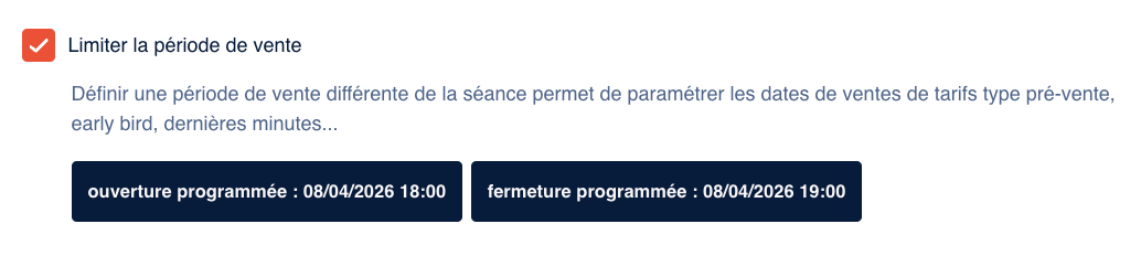 - « Ce tarif s’ouvre X jours avant la séance »