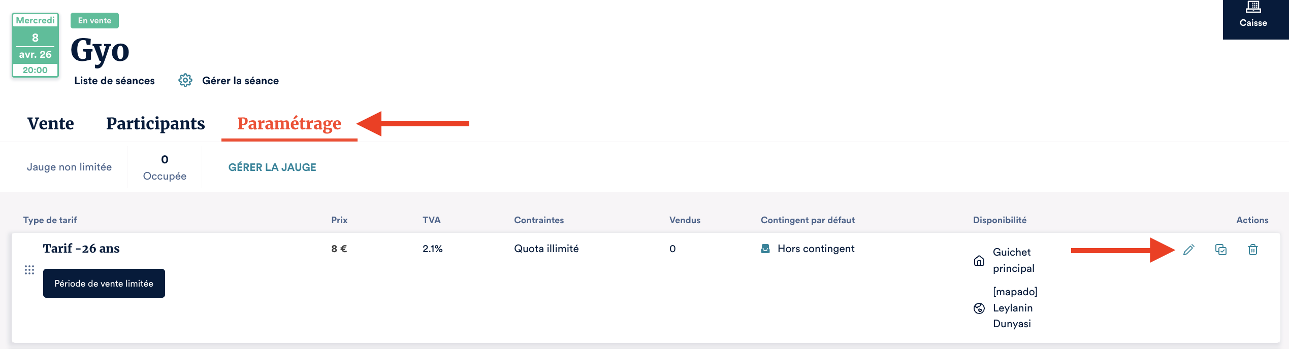 Votre événement n'apparaît pas sur votre minisite de billetterie ? Il n'apparaît pas sur le guichet ? Vos tarifs sont indisponibles à l'achat ? Dans ce cas, plusieurs vérifications sont à réaliser : 1. Les quotas Jauge de la séance Peut-être votre ...