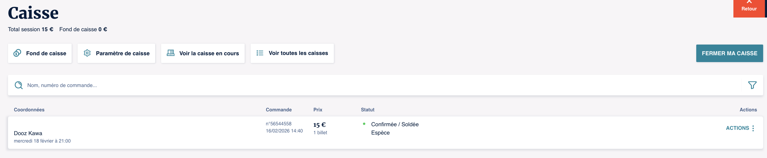 Une fois que que la modification est validée, on peut voir le fond de caisse.