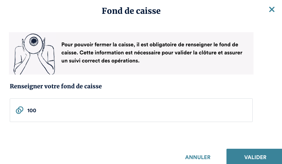- Il reste modifiable dans la caisse en cliquant sur "fond de caisse".