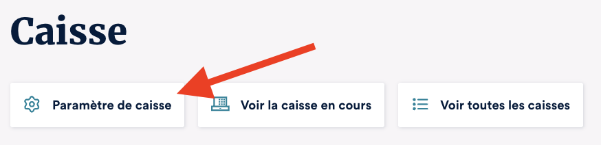 Pour activer le fond de caisse il suffit de vous rendre dans la caisse et de cliquer sur "Paramètres de caisse".