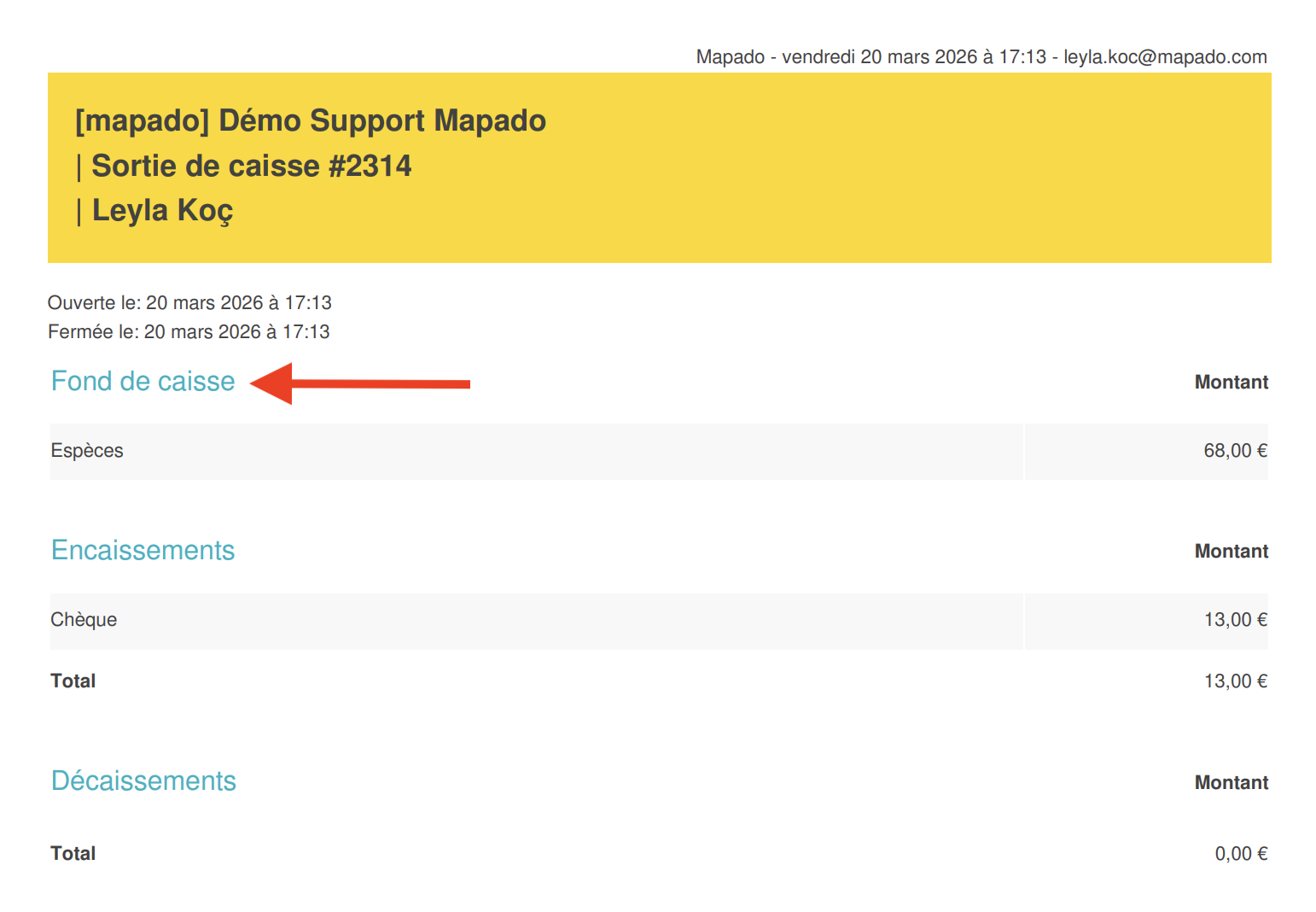 Si un fond de caisse par défaut a été défini dans les paramètres :