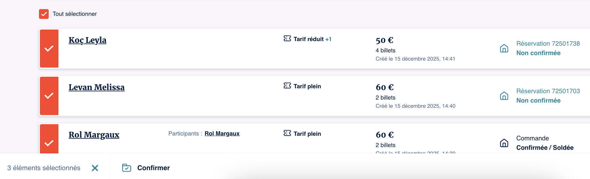 9 janvier 2026 [Vente] Confirmer plusieurs réservations en masse Dans la liste des participants, vous pouvez désormais confirmer en masse plusieurs réservations. |