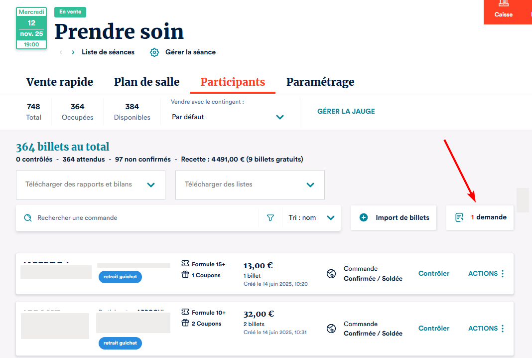 Ce n'est qu'au moment de l'acceptation de la demande que des places seront attribuées. Vous serez alors libre d'ajuster la tarification en fonction de vos disponibilités dans la salle et des votre grille tarifaire.