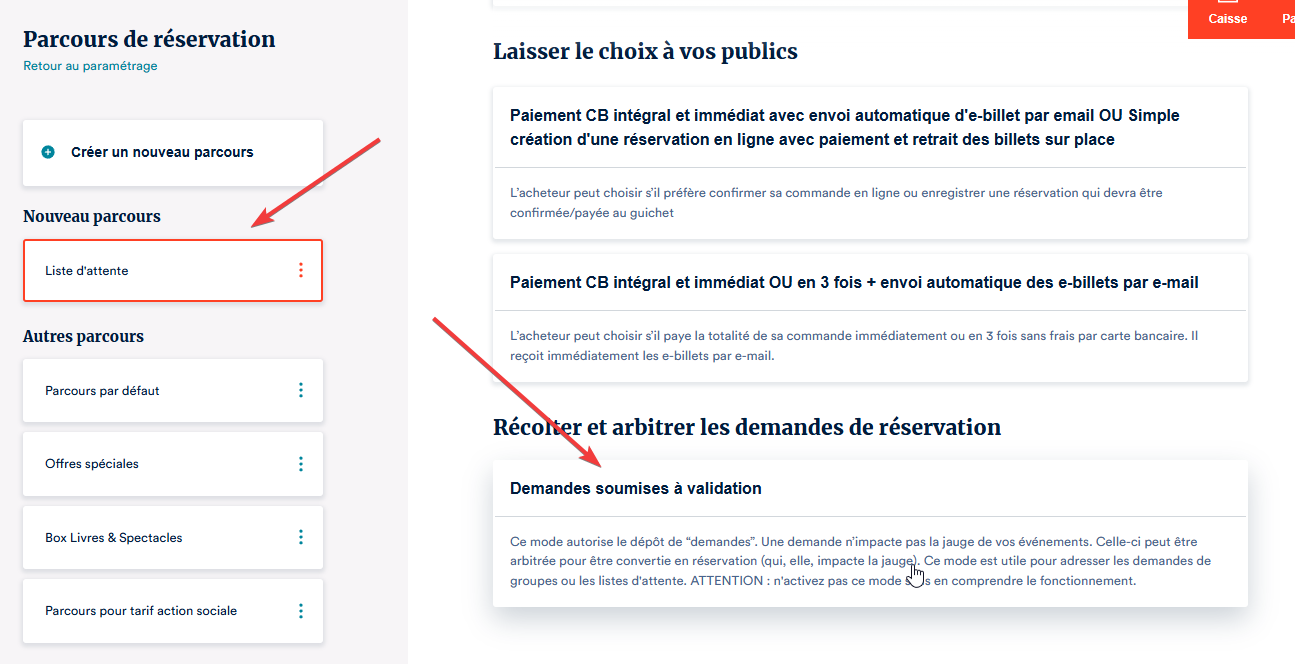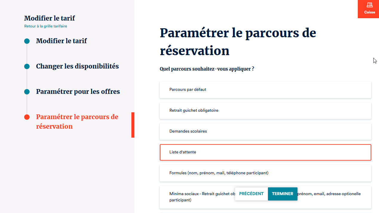 Vérifier que le parcours de réservation "Liste d'attente" existe