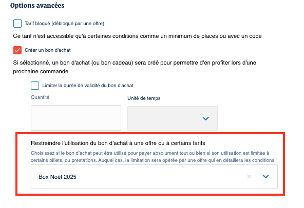 En complément : Lier un bon d'achat à une offre / à une formule donnée