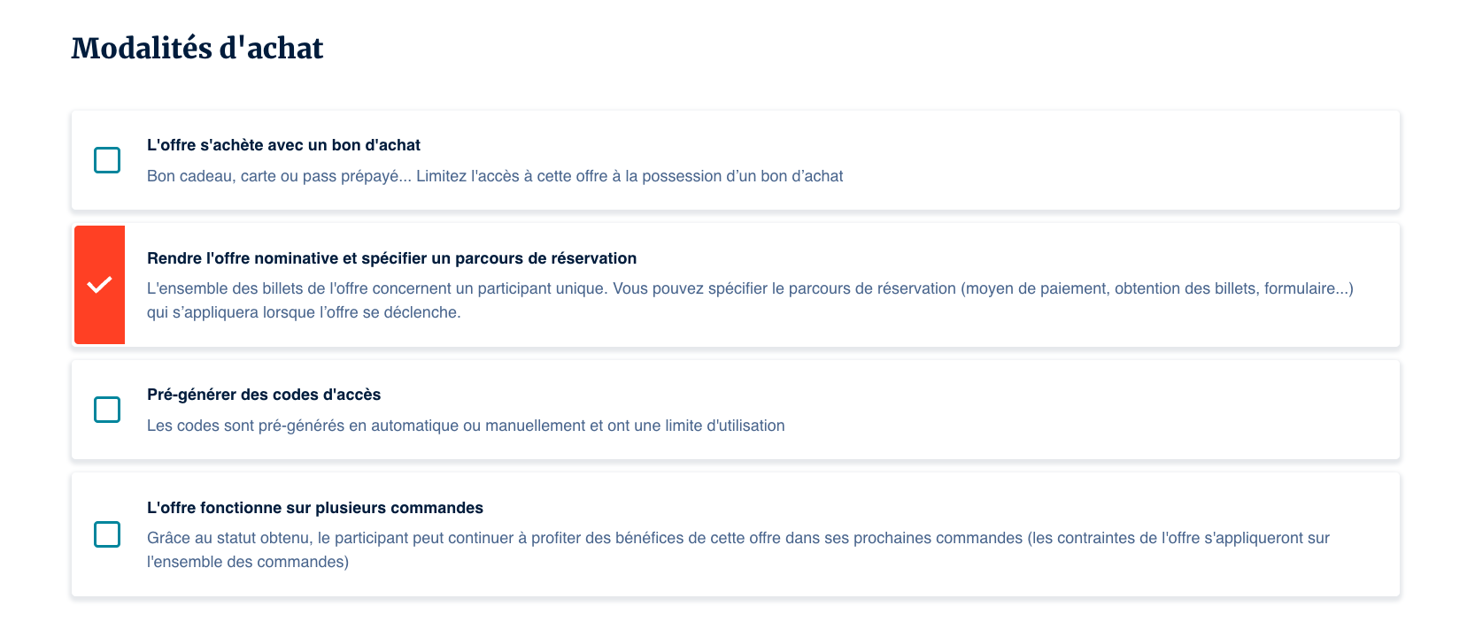 - Le second qui est plus souple sur les quantités de places sélectionnables
