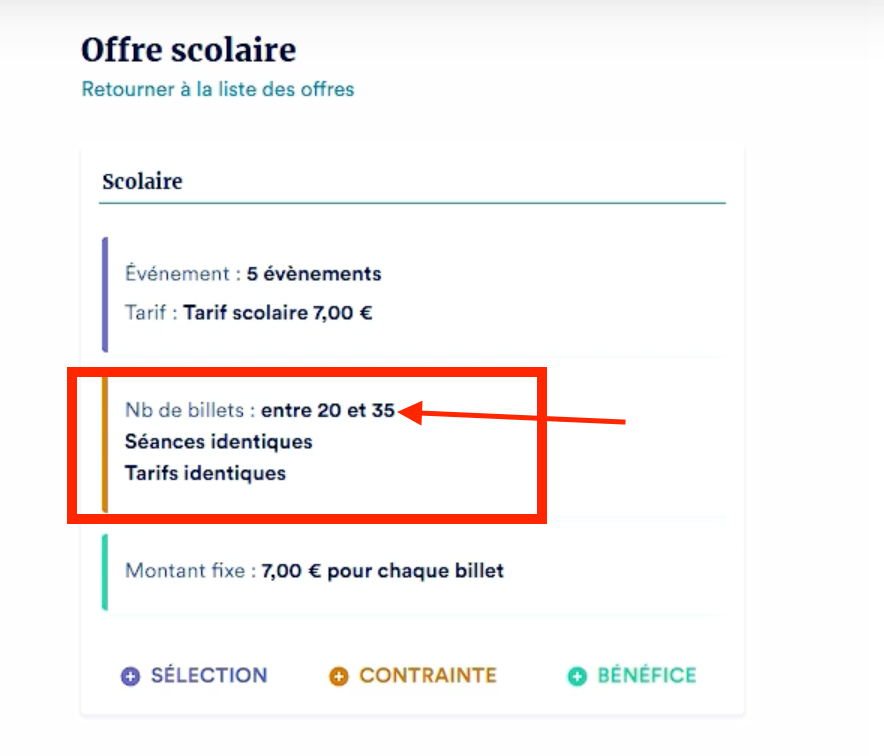 L'offre se déclenche simplement à partir d'un nombre de places minimum donné sur une sélection d'événements prédéfinie.