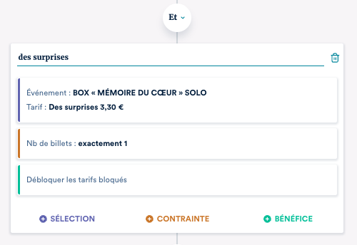 La condition est alors de respecter un nombre minimum de places mises au panier pour que l'offre se déclenche.